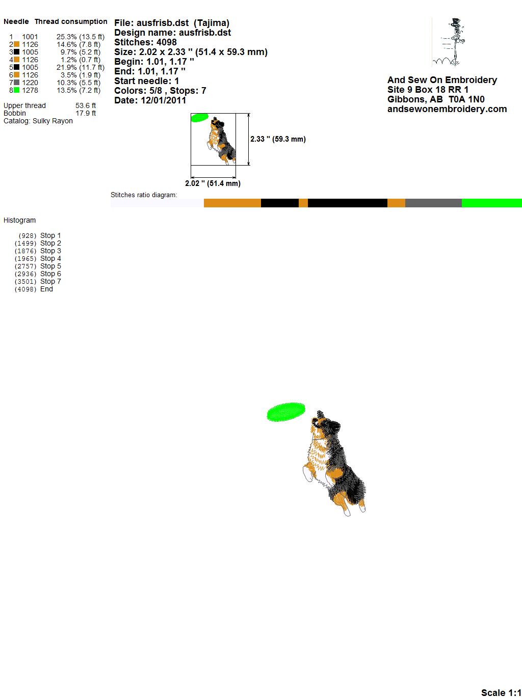 Australian Shepard Dog with Frisbee Disc embroidery design